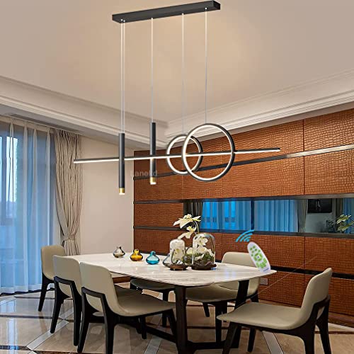 Lanekd Lampada a Sospensione LED Tavolo da Pranzo Sala da Pranzo Lampadari Dimmerabile Con Telecomando 43W Ufficio Lampadario per Corridoio Bar Cucina Lampada a Sospensione a Soffitto (Nero, L100cm)