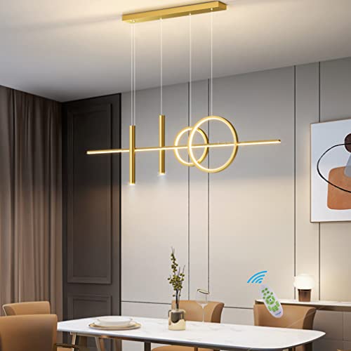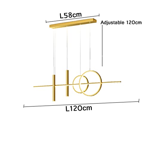 Lanekd Lampada a Sospensione LED Tavolo da Pranzo Sala da Pranzo Lampadari Dimmerabile Con Telecomando 43W Ufficio Lampadario per Corridoio Bar Cucina Lampada a Sospensione a Soffitto (Oro, L120cm)