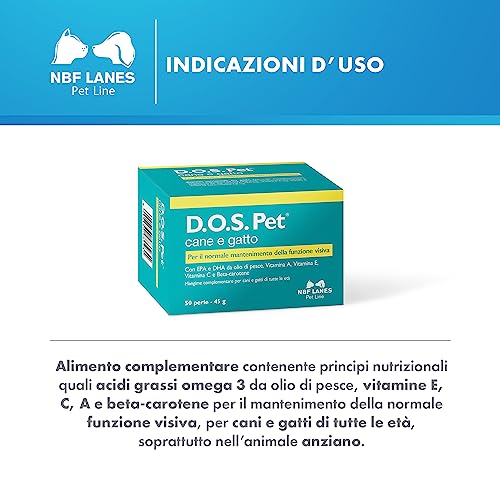 NBF Lanes | D.O.S. Pet Cane e Gatto, 50 Perle Appetibili, per il Normale Mantenimento della Funzione Visiva