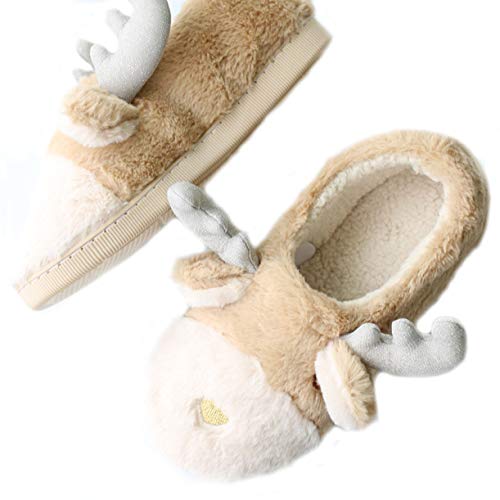 LANFRE Pantofole per animali Ciabatte di alce di Natale, pantofole calde invernali Pantofole per donna Pantofole per le coppie Pantofole in peluche (34-35 EU, Shoes)