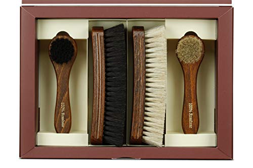 Langer & Messmer Set di 4 Spazzole scarpe in crine di cavallo per la cura e la pulizia professionale della scarpa