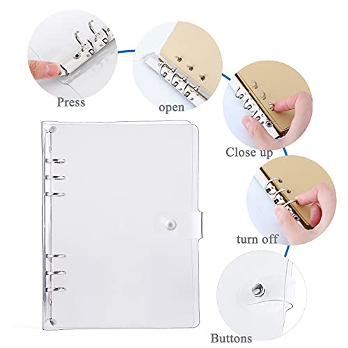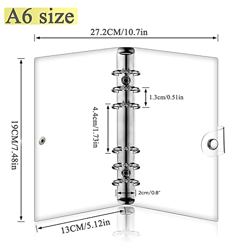 LANGING - Raccoglitore ad anelli per fogli di formato A5, standard, a 6 fori, copertina in PVC morbido e trasparente, ricaricabile A6