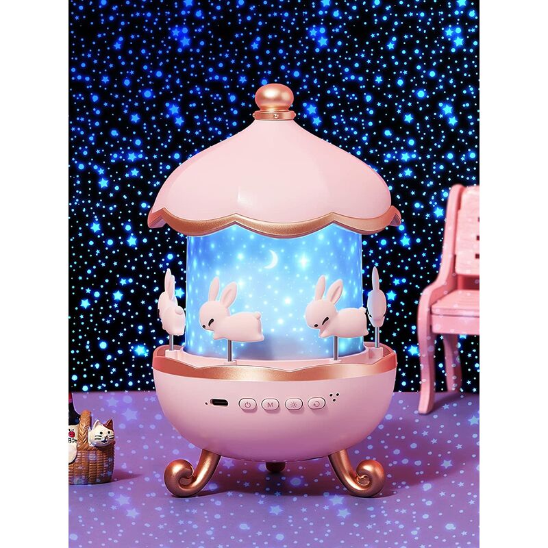 Proiettore di luce notturna per bambini con 8 musica incorporata: perfetto come luce notturna per bambini per lampada da comodino, dopo aver letto una storia, accendi la luce notturna per bambini e riproduce musica mentre proietta le stelle sul soffitto . Luce notturna per bambini con 8 musica incorporata: scintillio, Natale, cielo, ecc. La luce notturna per bambini con lettore musicale ha più livelli per controllare il volume. Ideale per calmare i bambini attivi prima di coricarsi e rendere divertente l'ora di andare a dormire. 6 temi Rojection Night Light Kids - Shape Pink Rabbit Sound Machine Baby Night Light ha 6 proiezioni come Natale, Compleanno, Galassia, Stellato, Cavallo, Proiettore oceanico. La luce notturna per bambini per la camera da letto è così luminosa che i bambini possono indicare gli animali all'esterno.La luce notturna per proiettore per bambini ha 3 colori di luci gialle, bianche e blu, la luce notturna per bambini musicale e luminosa emette 12 diverse modalità di