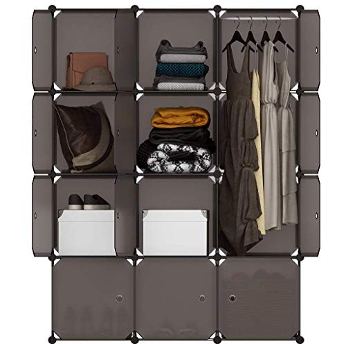 LANGRIA Armadio Modulare 12 Cubi Scaffale con Ante Separatori, Armadietto con Cassette Cuboide, Scarpiera per Abiti Calzature Giocattoli Forniture Scolastiche Accessori 12 Cubi Marrone Trasparente