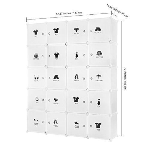 con i 20 moduli che compongono questo armadio, hai abbastanza spazio per mettere vestiti, borse, biancheria intima o giocattoli;
