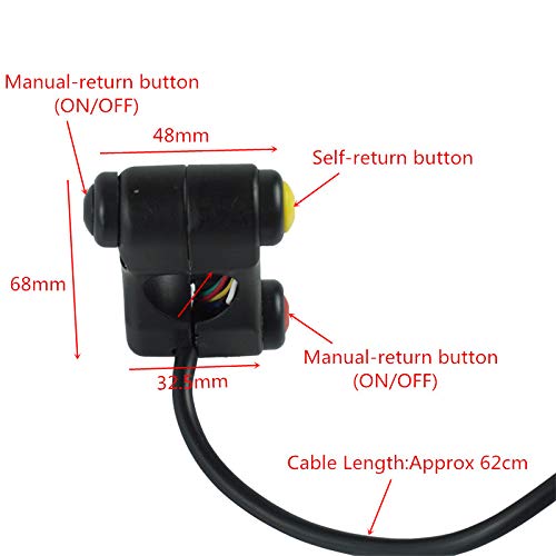 -Design universale del manubrio da 7/8"per la maggior parte dei motocicli Pulsante di ritorno manuale (ON-OFF)per luci generali,luci di emergenza,fendinebbia,fari e freni di emergenza per dispositivi mobili
