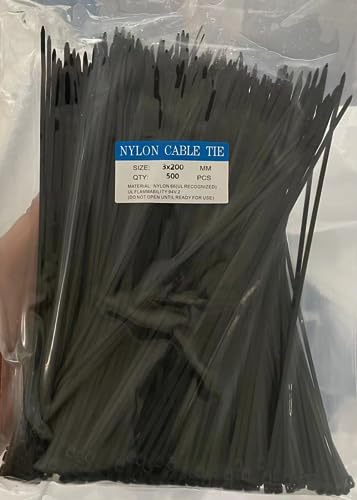 LANHUIYY Set di 500 fascette stringicavo nero, 200 mm, resistenti ai raggi UV, gestione dei cavi, per lavori di giardinaggio, 500 pezzi, ZD-004