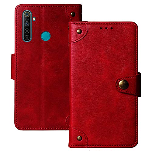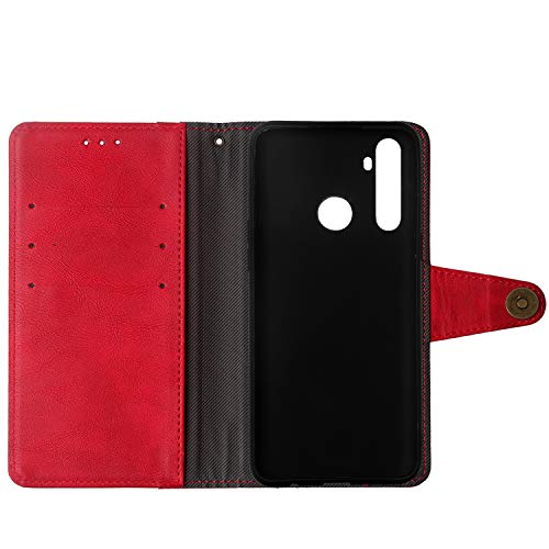 Lankashin Vera Pelle Stand Portafoglio Cover per Oppo Realme 5i Premium Caso Case Copertina Custodia Guscio Gel TPU Silicone Protettiva Anti Urto e Graffi (Rosso)