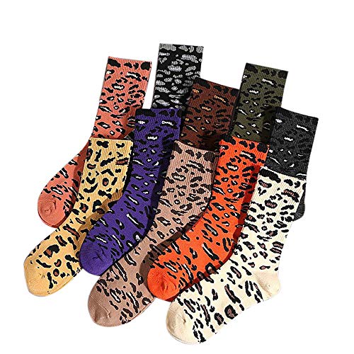 Lankater 5pairs Signora Leopard Print Calzini Crew Sock Calze Del Cotone Traspirante Per La Femmina (colori Casuali)