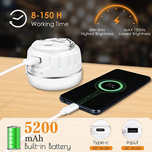 BACK-UP Power Bank e ricarica rapida: le luci da campeggio sono anche una power bank 5200 con porta USB a ricarica rapida. Dotato di cavo di ricarica USBC di alta qualità per un'esperienza di ricarica rapida (lunghezza del cavo: 1 m).