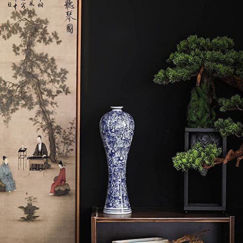 LANLONG Vaso di ceramica in porcellana blu e bianca cinese fatto a mano decorativo vaso di fiori per soggiorno, decorazione della casa, ufficio, centrotavol(33cm)