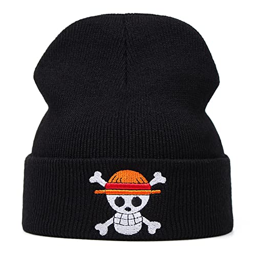LANLYLGQ Berretto lavorato a maglia One Piece Beanie unisex uomo donna cappello caldo cappello da sci cappello invernale ricamo, Nero, Taglia unica