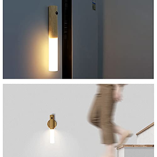 LANMOU Lampada da Parete Legno Ricaricabile USB con Rilevatore di Movimento, Luci da Parete a Batteria Wireless Bianco Caldo Applique con Interruttore, Lampada da Letto Magnetica per Camera da Letto