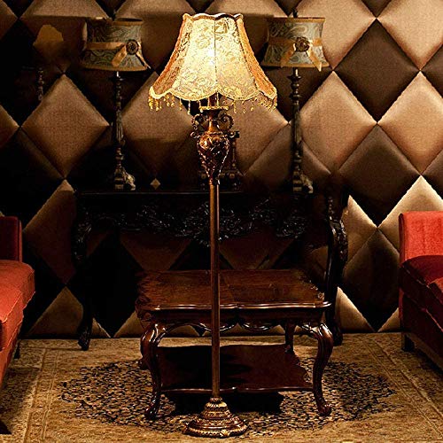 LANMOU Lampada da Pavimento Vintage Resina Intagliata a Mano Piantana Lampada con Tessuto Paralume Soggiorno Lampada per Art Deco Camera da Letto, E27 (Senza Sorgente Luminosa)