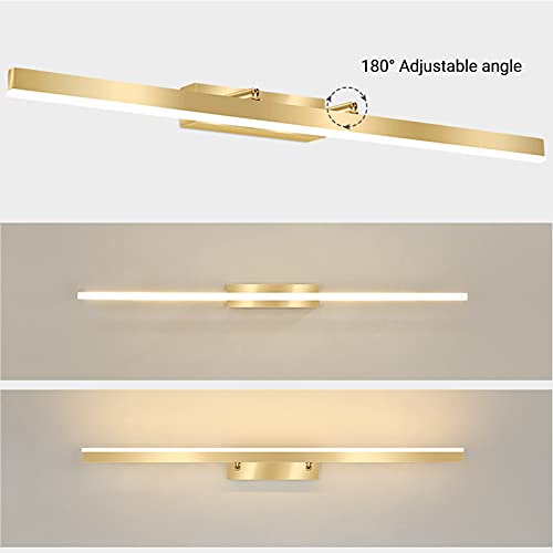 LANMOU Lampada da Specchio LED Dorata, Lampada da Parete Bagno Impermeabile IP44 Luce Trucco Angolo Regolabile di 180° Applique Frontale a Specchio Cosmetico Per Armadietto a Specchio,6000k,122CM/17W