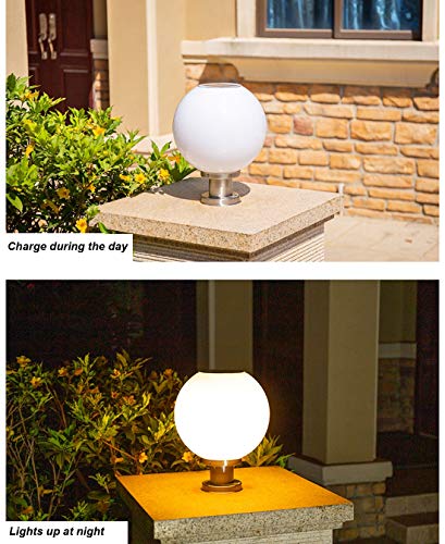 LANMOU Lampione Solare a LED Esterni IP65 Lampada Sfera in Acrilico, Lampada da Giardino Dimmerabile con Telecomando, Base in Acciaio Inox, Batteria da 1300 mAh, Diametro 25cm