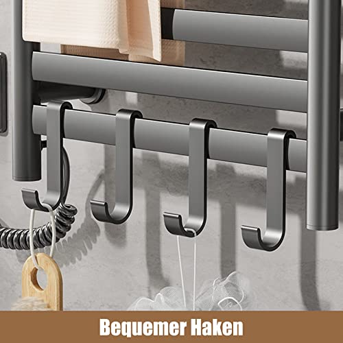 LANMOU Scaldasalviette elettrico da bagno, 63 x 43 cm, in acciaio inox grigio, con termostato e spina, con regolazione della temperatura e timer, con 4 ganci (destra)