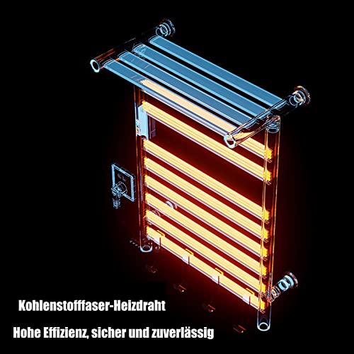 Risparmio energetico: il portasciugamani elettrico utilizza la tecnologia di riscaldamento in fibra di carbonio, che consente di risparmiare il 30% di elettricità rispetto al tradizionale riscaldamento a iniezione d'acqua. Il radiatore per asciugamani viene fornito preinstallato con una barra riscaldante elettrica e viene fornito pre-riempito con antigelo. Appendere alla parete, collegare e il gioco è fatto