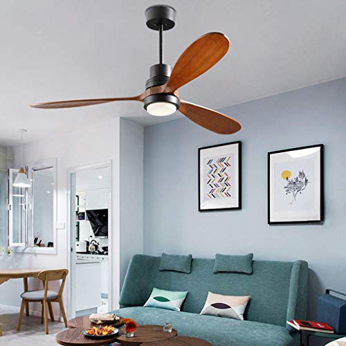 LANMOU Ventilatore da Soffitto Legno, 132cm Lampadario con Ventilatore Silenzioso, 3 Pale a Legno, Velocità Regolabile, Timer, Ventilatore da Soffitto con Luce e Telecomando LED Plafoniera,Nero