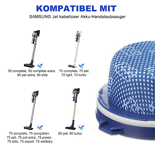Compatibilità: il filtro compatibile con SAMSUNG Jet 90 complete, 90 complete extra, 90 pet extra, 90 elite, 75 complete, 75 complete+, 75 pet, 75 pet extra, 75 power, 75 elite, 75 expert, 75 wet&dry, 70 complete, 70 pet, 70 light, 70 turbo. Bo, 60 PP et, 60 turbo Aspirapolvere portatile senza fili