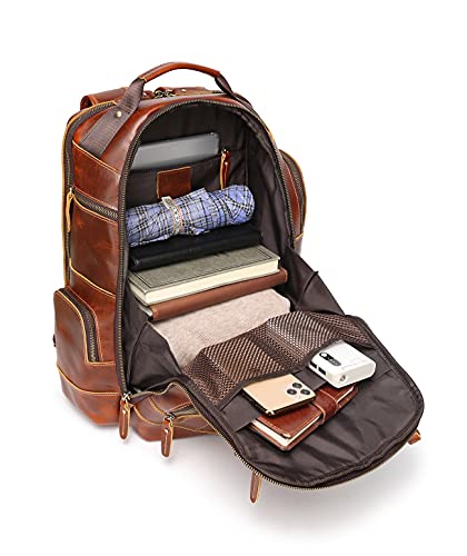 LANNSYNE Vintage Uomini Vera Pelle Computer Portatile Da 15,6 Pollici Zaino Camping Travel 24L Zaino