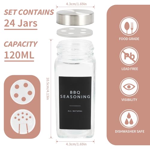 Lannvan Barattoli Spezie - 24 Barattoli per Spezie con Coperchio - 120ml Contenitori Spezie per Cucina con Etichette Spezie - Barattoli Porta Spezie con Setaccio, Etichette, Spazzola, Lmbuto