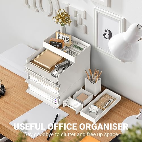 Lannvan A4 Porta Documenti Ufficio Scrivania - 5 Portadocumenti da Scrivania impilabile - con Organizer da Scrivania Multifunzionale - Vaschette Porta corrispondenza per casa, ufficio e scuola