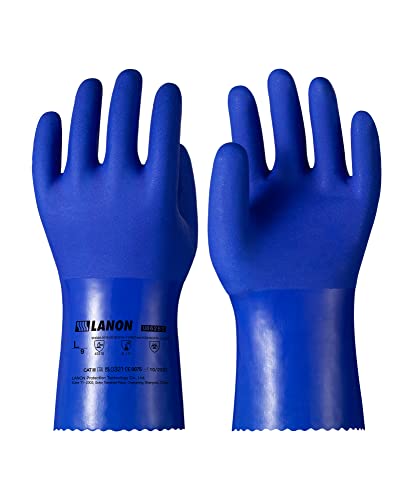 LANON Guanti Resistente alle Sostanze Chimiche in PVC, Guanti in Gomma per Impieghi Gravosi, Protezione da Acidi, Alcali e Olio, Impermeabile, Antiscivolo, Blu, Taglia XXL