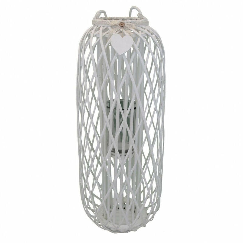 Lanterna Lanterna Bernadette in Vimini Bianco Lanterna BIANCA in vimini e vetro con nastro in pizzo e decoro a cuore Dimensioni: Top Ø21x106 h cm - Centrale Ø40x106 h cm - Vetro Ø15x21 h cm Colore: Bianco