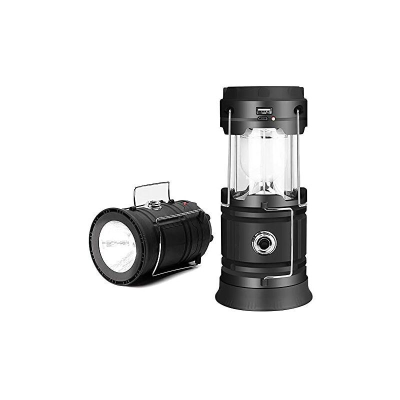 LUCE DI RICARICA SOLARE E USB - Puoi caricare questa luce da campeggio alla luce del sole o tramite una porta USB a seconda della situazione attuale. Quando è completamente carica, la lanterna continuerà a fornire una luce intensa per 4-5 ore. Inoltre, l'uso della resina ABS e del policarbonato migliora la resistenza agli urti, al calore e all'abrasione. Lanterna a torcia 2 in 1 e impermeabile - Con un design pieghevole, puoi appendere la luce a LED come un lanterna, posizionala su un tavolo come una lampada o piegala come una torcia. Appendi la lanterna a una tenda da campeggio o portala con una maniglia in acciaio inossidabile e può essere utilizzata anche come batteria per cellulare;