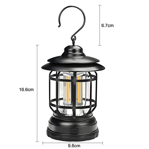 Lanterna LED da campeggio, lanterna a LED vintage, lanterna portatile, per interni ed esterni, giardino, campeggio, cortile, veranda, colore nero