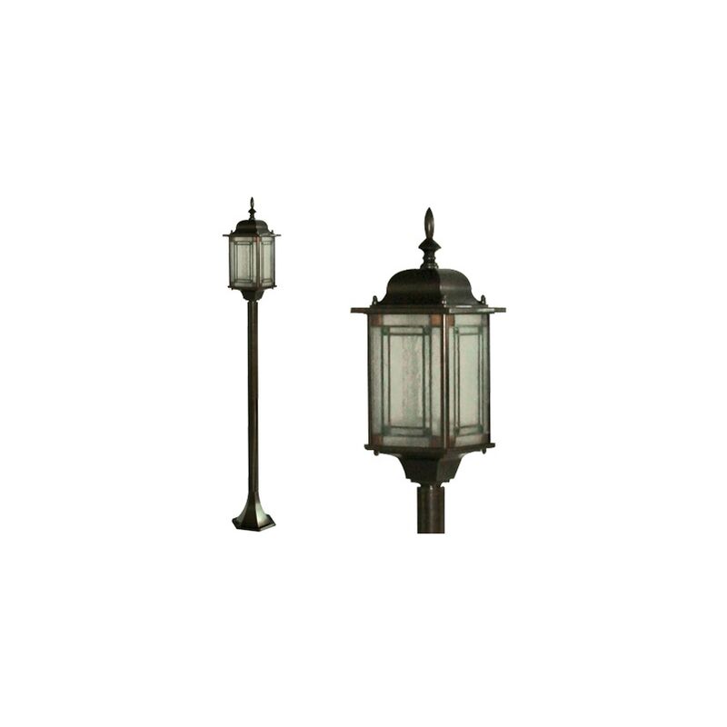 Corpo in alluminio pressofuso, finitura bronzo, schermo di protezione in vetro decorato. su piantana h. 123 cm.