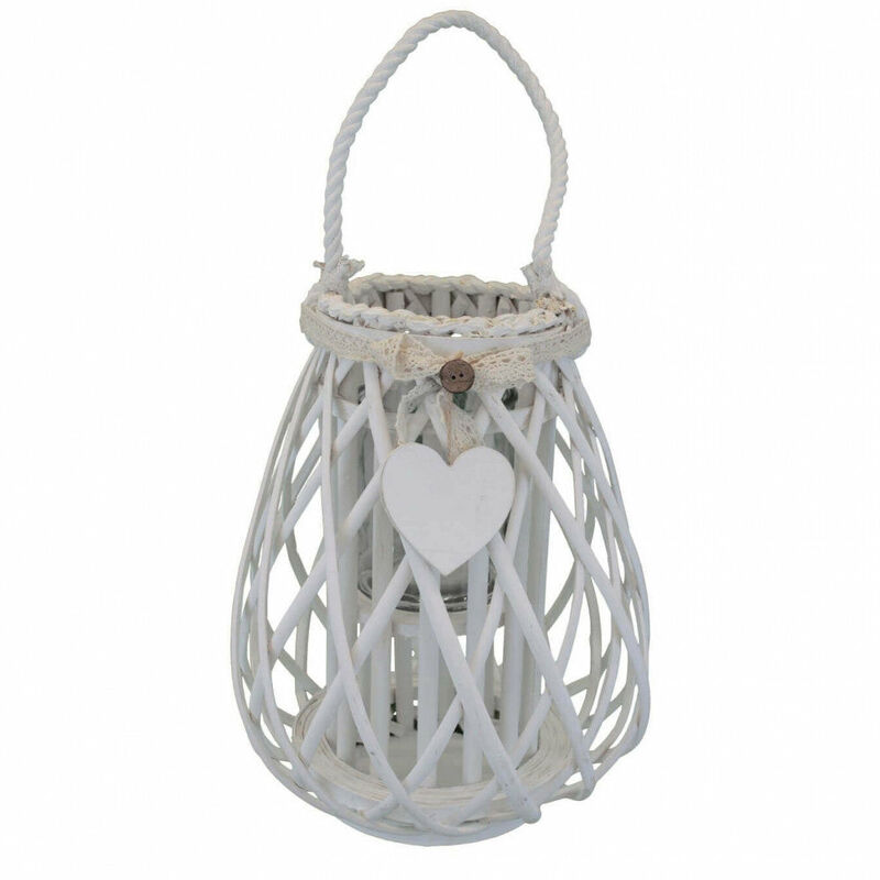 Lanterna Lanterna Edwige in Vimini Bianco Lanterna BIANCA in vimini e vetro con nastro in pizzo e decoro a cuore Dimensioni: Top Ø16x40 h cm - Centrale Ø28x40 h cm - Vetro Ø12x12 h cm Colore: Bianco