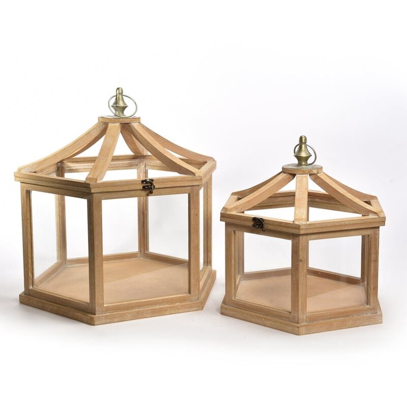 come segna passo ornamentale lungo un vialetto, come piccolo lampione su un muretto o come centrotavola per serate all'aperto. Specifiche Tecniche: Realizzata in legno anticato Dotata di gancio per poter appendere Dimensioni: Lanterna grande 50 x 44 x h 50 cm Lanterna Piccola 40.5 x 35.5 x h 39.5 cm Disponibile in due colorazioni: Legno Legno decapato