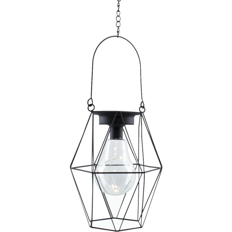 Questa incantevole lanterna a lampada è un'accattivante aggiunta alla tua decorazione esterna. Le mini lucciole all'interno di una lampadina in vetro finta, creano un'atmosfera magica, perfetta per creare un'ambientazione suggestivo. L'alimentazione è semplice e conveniente, con l'uso di due pile stilo AA (non incluse), che garantiscono una lunga durata per godere di serate romantiche sotto le stelle. La lanterna è dotata di una catena a filo che ti permette di posizionarla su rami di alberi, su una parete o sotto un gazebo. Questa versatilità la rende ideale per abbellire gli spazi esterni della casa. La struttura geometrica in metallo nero aggiunge un tocco di eleganza al tuo ambiente esterno. La lampadina in vetro completa il design, creando una combinazione perfetta tra estetica e funzionalità. Porta la magia nelle tue serate all'aperto con questa lanterna a lampada, perfetta per creare un'atmosfera incantevole e accogliente nel tuo spazio esterno. Caratteristiche: Lanterna con