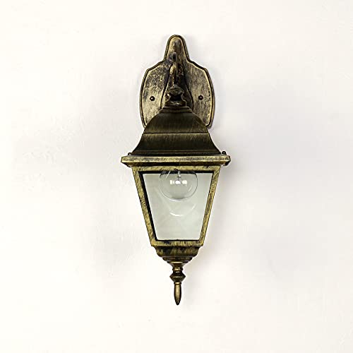 Lanterna da esterno Reims stile rustico shabby oro anticato E27 impermeabile IP44 perfetta per giardino, viale di ingresso e cortile