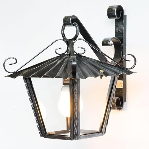 Lanterna classica in ferro battuto con staffa a parete
