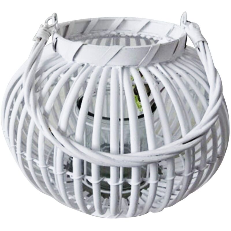 Lanterna BIANCA in vimini e vetro cm Diametro: 32/top Diametro: 16 x 24h/vetro Diametro: 12 x 12h