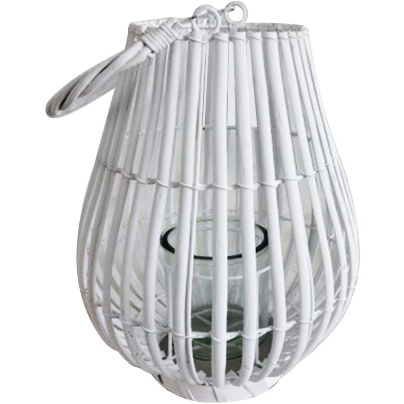 Lanterna BIANCA in vimini e vetro cm Diametro: 35/top Diametro: 18 x 43 h/vetro Diametro: 10 x 15h