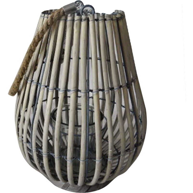 Lanterna GRIGIA in vimini e vetro cm Diametro: 35/top Diametro: 18 x 43 h/vetro Diametro: 10 x 15h
