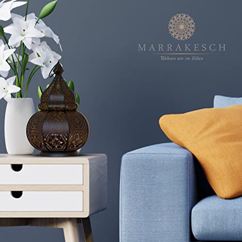 Lanterna orientale in metallo Maha nero, 28 cm, lanterna orientale marocchina da giardino, lanterna in metallo marocchina per esterni come lanterna da giardino o per interni da tavolo