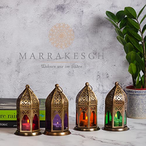 SET di 4 Lanterna orientale in metallo in vetro Basem 16cm rosso verde viola arancione | luce marocchina in vetro colorato per uso interno | Lampada per uso esterno come lanterna | luce da giardino