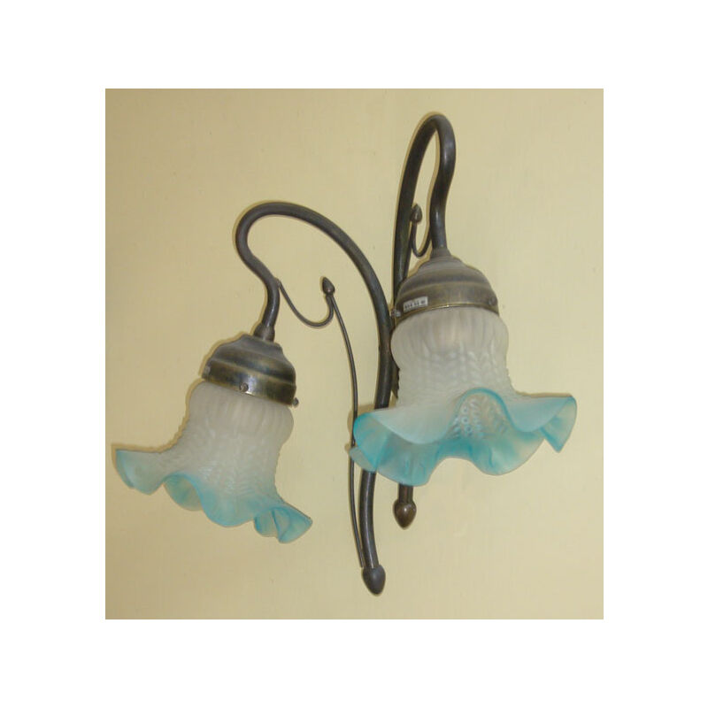 LANTERNA PLAFONIERA LAMPADA APPLIQUE DA PARETE OLIVA 2 LUCI CM.37X20XH33 Bellissima applique in ferro battuto aventi le seguenti caratteristiche: larghezza cm. 37 altezza cm. 33 profondità cm. 20 attacco: E14 2x40 watt materiale: Ottone bronzato e Vetro soffiato