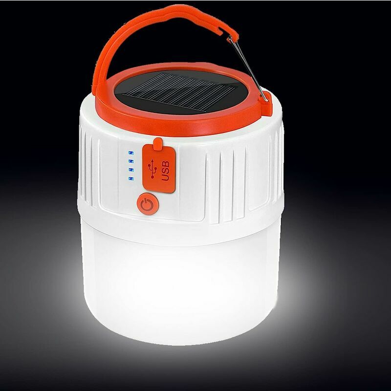 Ricarica solare e USB: la batteria integrata agli ioni di litio da 1200 mAh consente di caricare la lanterna tramite energia solare o USB. La lanterna offre due metodi di ricarica per mantenere la lampada a LED accesa più a lungo. La lanterna da campeggio può essere caricata anche come power bank tramite la porta USB dei tuoi telefoni o altri dispositivi Display di potenza: la luce da campeggio d L'outdoor ha quattro livelli di visualizzazione di potenza: 25%, 50%, 75%, 100%. Puoi cogliere la potenza in tempo reale, caricarla in tempo reale ed evitare situazioni di emergenza. Impermeabile e altissima luminosità: il livello di protezione IPX45 significa che può evitare schizzi da tutte le angolazioni, rendendolo molto adatto a campeggio, escursionismo, pesca, illuminazione, emergenza, portatile, ecc. L'illuminazione a 360 gradi può fornirti una luminosità sufficiente. Una volta che la batteria è completamente carica, è adatta per ambienti interni ed esterni e condizioni meteorologiche