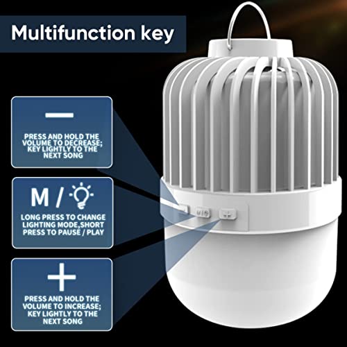 【Luce LED super luminosa】 Con 7000 lumen e un angolo di fascio di 360°, le nostre luci da campeggio per tende possono facilmente illuminare una stanza buia durante un'interruzione di corrente, illuminare un'intera tenda durante il campeggio ed è l'aiuto perfetto per la tua autodifesa in caso di emergenza. Basta premere a lungo l'interruttore della luce della tenda per regolare la luminosità, mentre premere brevemente può accendere o spegnere la musica. Premere leggermente il tasto + / - per cambiare le canzoni;