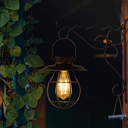 Lanterna solare da esterni, da appendere, in metallo, lampada solare decorativa da giardino, con lampadina Edison, luce a energia solare impermeabile(fondo rotondo)