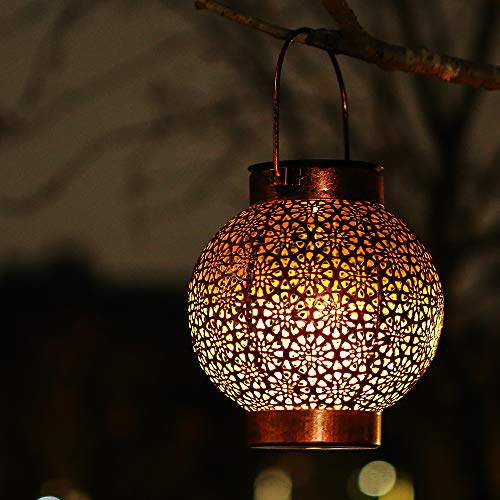 Decorazioni da giardino: è dotato di una robusta ciotola in metallo bronzo e di un squisito motivo cavo marocchino. L'aspetto particolare delle lanterne cinesi non solo può decorare il vostro giardino durante il giorno, ma anche per l'illuminazione notturna può portare un bellissimo motivo sul pavimento e creare un'atmosfera misteriosa e romantica per il vostro giardino.