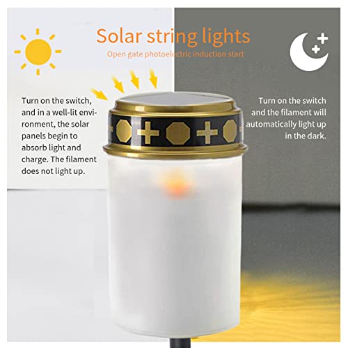 Effetto di illuminazione: la lanterna solare funeraria sembra estremamente naturale, crea quindi una luce calda e confortevole. Poiché non ha fiamma, potete mettere la lampada sulla tomba o nella lampada della tomba.