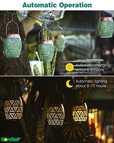 Lanterna solare a LED da 2 pezzi per esterni, lanterna solare bianca calda IP65 retrò per esterni impermeabili, lampade solari in metallo orientale per giardino esterno appeso decorazione balcone