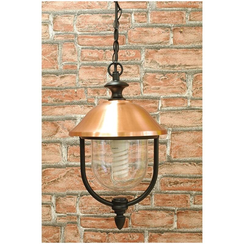 Lanterna Copper a sospensione con corpo in alluminio verniciato di colore nero dimensione 25x45h cm piu catena per fissaggio a soffitto. Elegantissima lampada con globo in metacrilato e copertura in rame per lampadine di potenza massima 60w, ideale da montare sotto un portico o su un balcone. Lampione moderno con un design che si adatta ad ogni tipo di arredo. Caratteristiche Tecniche: Dimensione: 25x45 h cm Attacco lampadine: E27 Materiale struttura: alluminio verniciato Materiale sfere: metacrilato Peso: 1.6 Kg